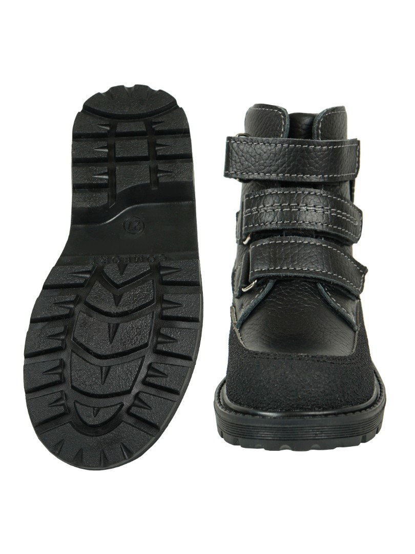 Широкий, устойчивый каблук специальной конфигурации - каблук Томаса. Каблук продлен с внутренней стороны до середины стопы, чтобы исключить заваливание стопы вовнутрь, так называемая косолапость, или вальгусная деформация. Анатомическая стелька с супинатором для правильного формирования свода стопы. Задник максимальной жесткости с удлиненным крылом надежно стабилизирует голеностопный сустав во время ходьбы. Упругая, умеренно-эластичная подошва, имеющая перекат, позволяет повторить естественное движение стопы при ходьбе для правильного распределения нагрузки на опорно-двигательный аппарат ребенка.