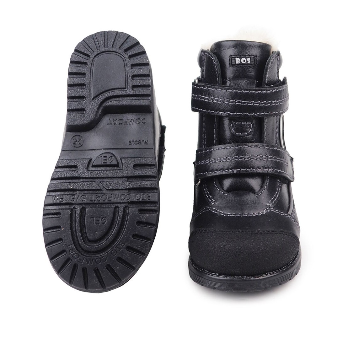 Утепленные ботинки из натуральной кожи премиум-класса и подкладки из шерстяного меха, согреют ножки ребенка. При выборе модели с шерстяным мехом, за счет плотности меха, рекомендуем выбирать детскую обувь на 1-1,5 размера больше. Внутри - съёмная стелька с активным супинатором. Жесткий задник надежно фиксирует голеностоп, а липучка "Велкро" помогает регулировать полноту. Умерено эластичная и прочная подошва с каблуком Томаса не скользит и хорошо поглощает ударную нагрузку, что позволяет ножкам ребенка не уставать.